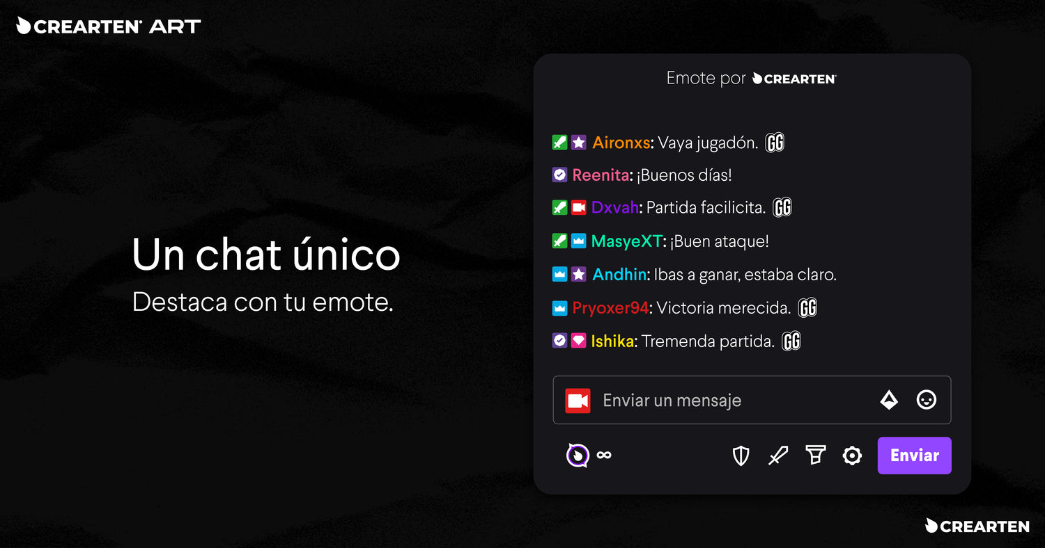 Los emotes hechos en Crearten están hechos con la máxima resolución para asegurar que en cada stream sean visibles y llamativos en todo momento.