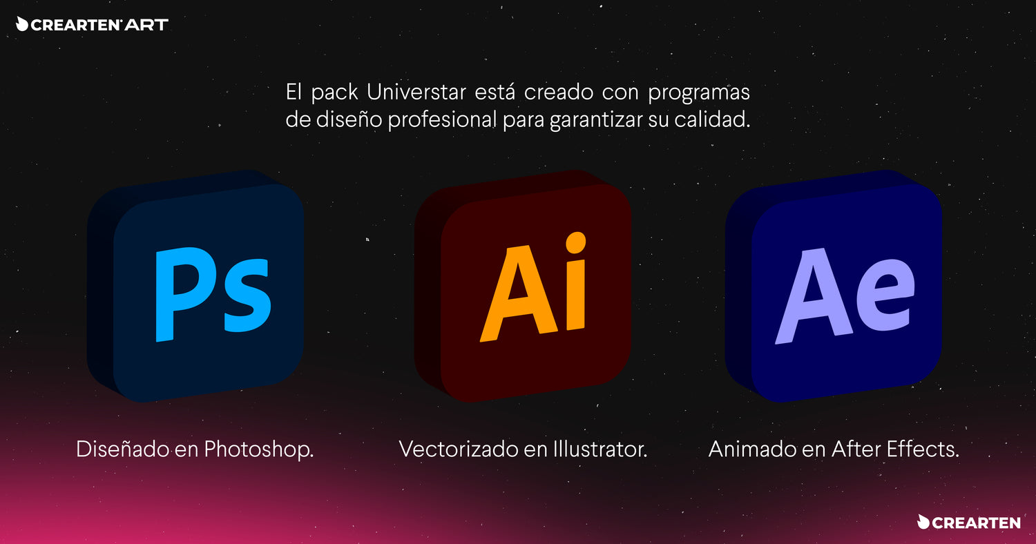 El overlay pack Universtar está diseño con los mejores programas de diseño para garantizar la mejor calidad. Incluye archivos en 1080 HD y 4K.